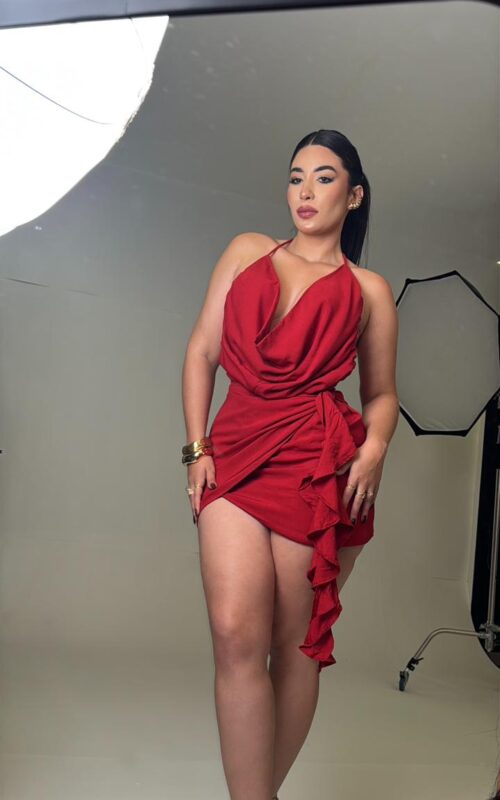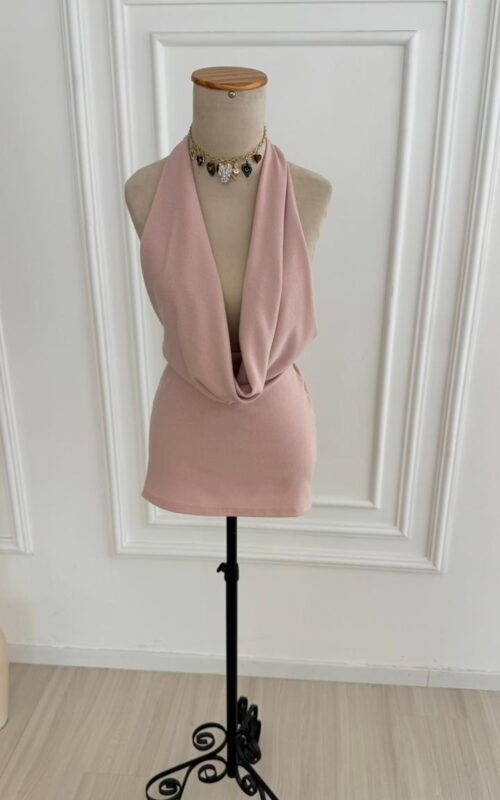 O decote na medida certa no busto, que se amarra no pescoço, garante um visual elegante e sofisticado. As costas nuas adicionam um charme especial, finalizando o look com muito estilo. Perfeito né?