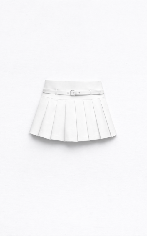 • Saia drapeada, com ajuste no comprimento e na lateral