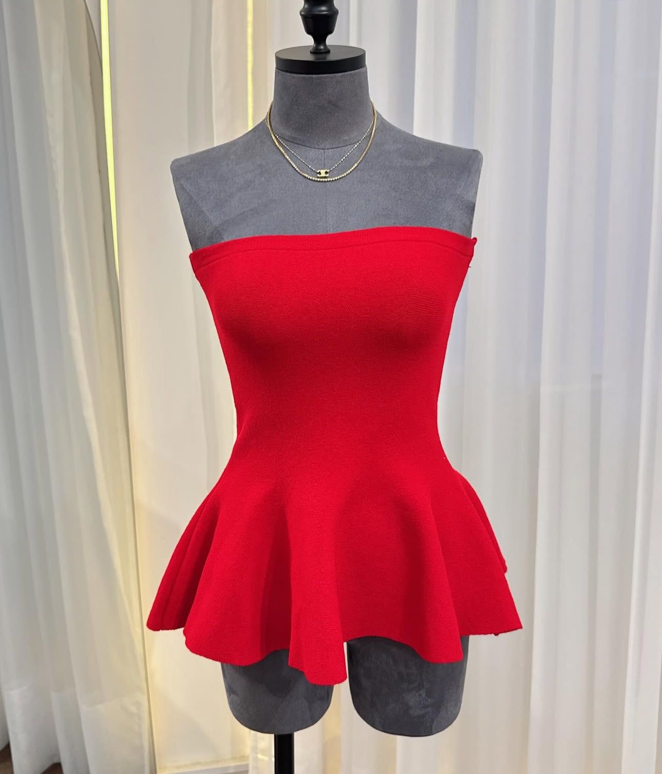 • Recorte peplum que valoriza a cintura.