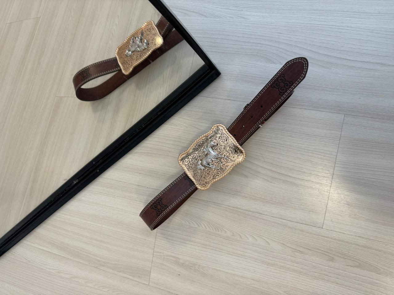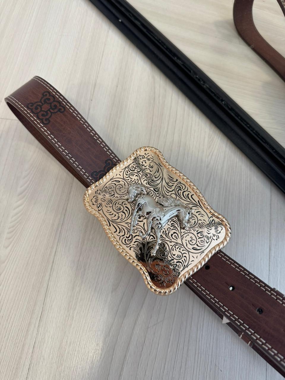 CINTO CARAMELO COM FIVELA DOURADA.36,38,40