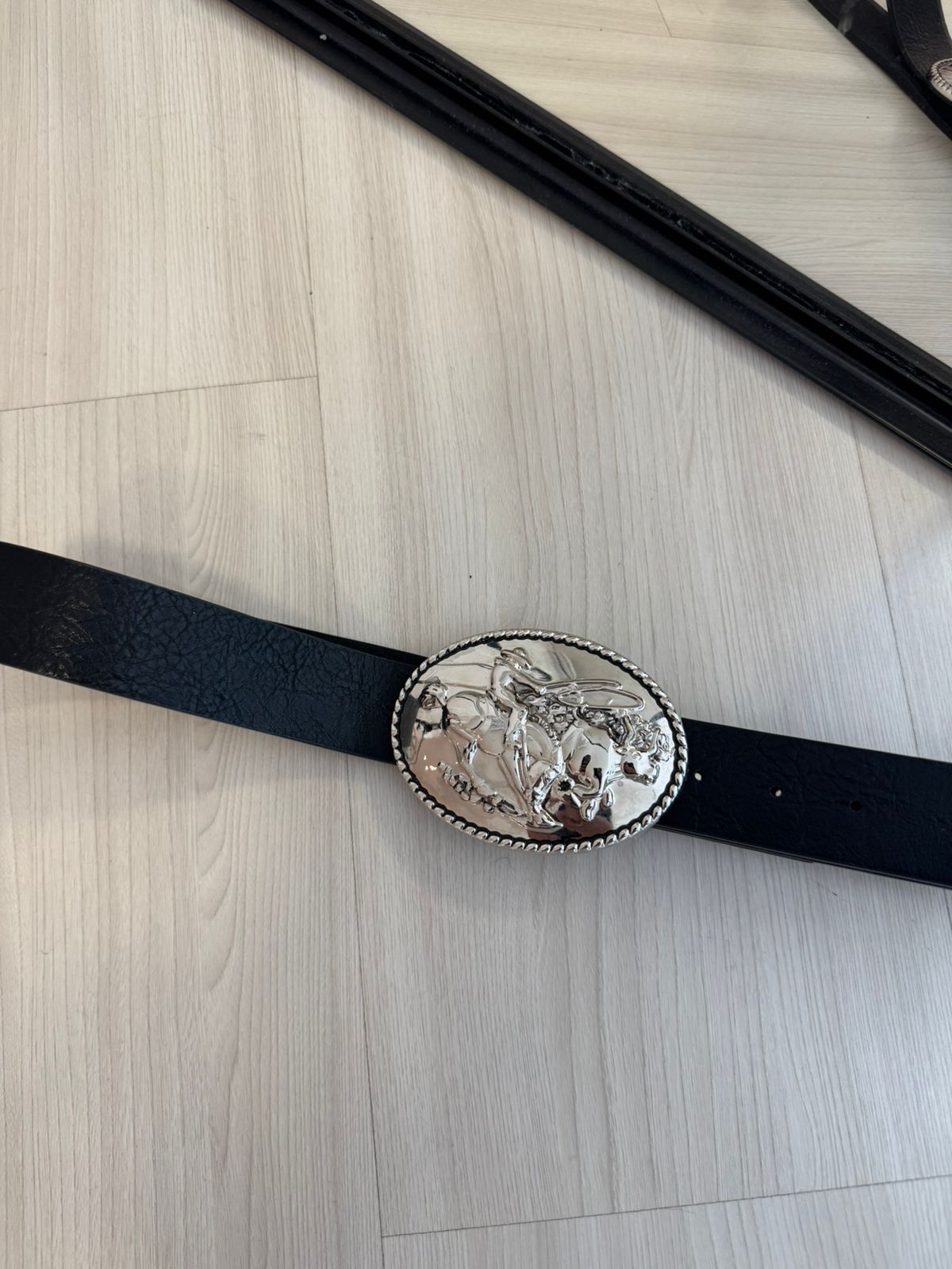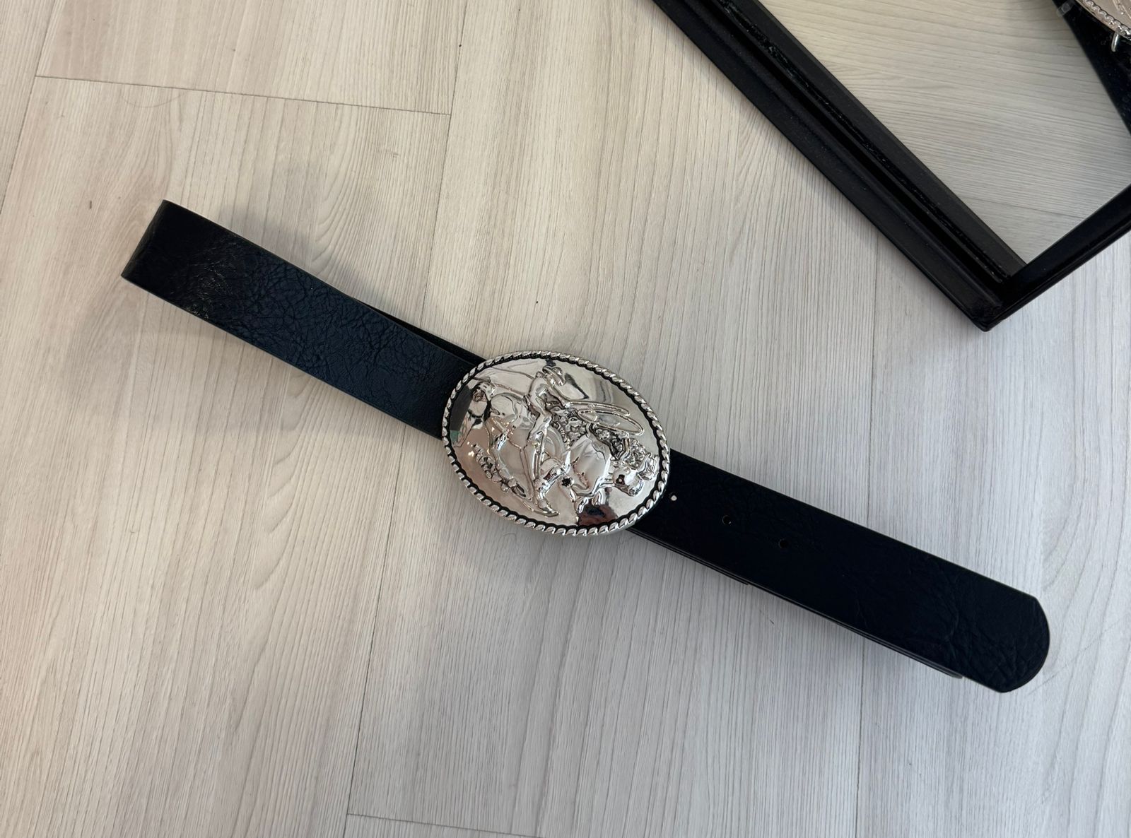 CINTO SINTÉTICO PRETO COM PRATA 36,38,40