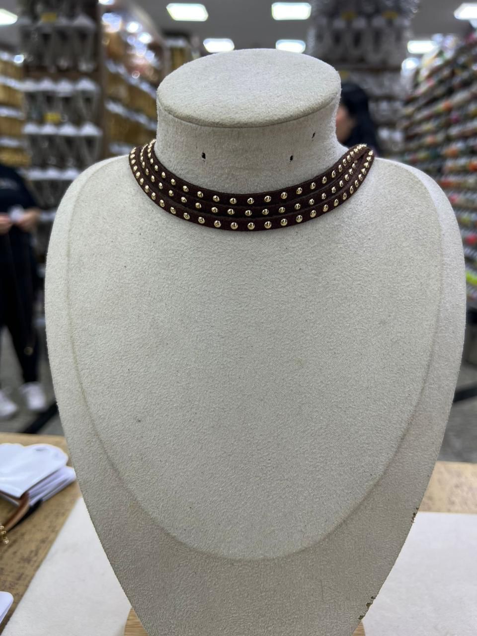 COLAR COM STRASS MARROM