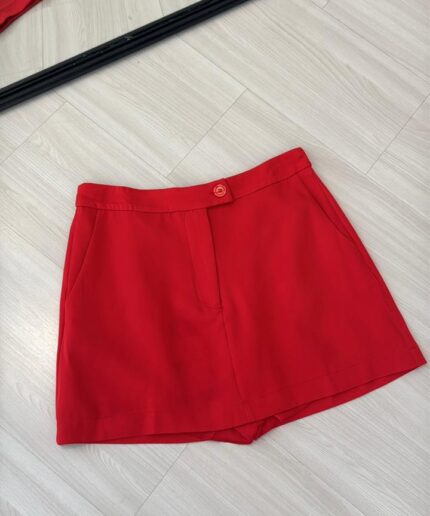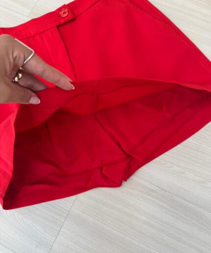 Alfaiataria premium. Cintura alta que alonga. Modelagem estruturada. Acabamento impecável. Fecho lateral discreto. Short por baixo. Saia atrás.