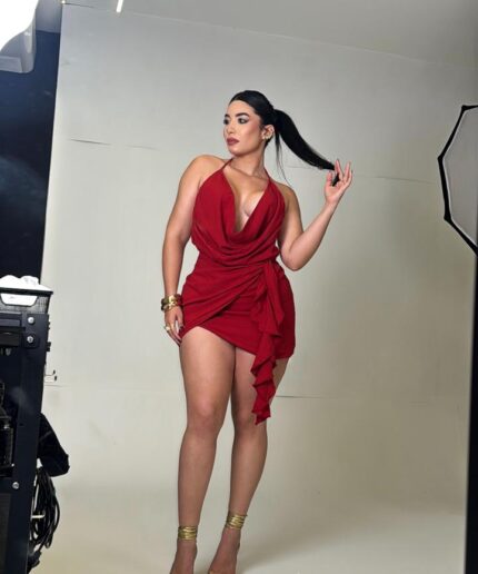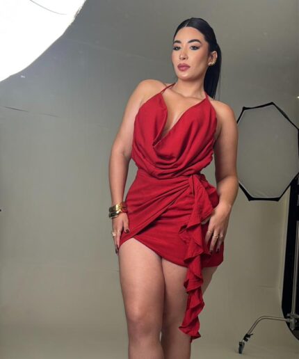 O decote na medida certa no busto, que se amarra no pescoço, garante um visual elegante e sofisticado. As costas nuas adicionam um charme especial, finalizando o look com muito estilo. Perfeito né?