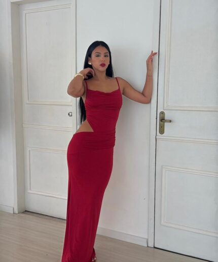 Descrição do produto: Vestido confeccionado em tecido Fluity, longo. Possui alça fina e recorte diagonal que valoriza a silhueta. A frente apresenta franzidos laterais, criando ajuste ao corpo e proporcionando caimento mais estruturado e sofisticado.