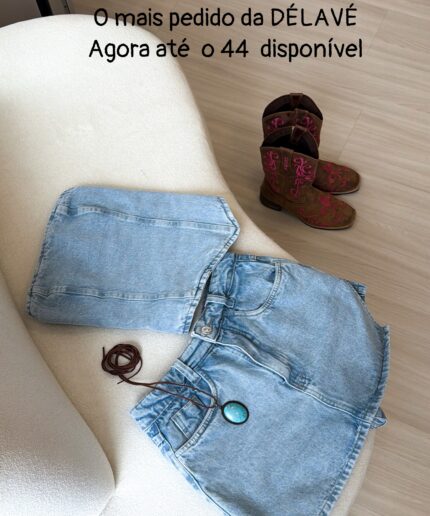 Conjunto Jeans Tomara que CaiaConjunto tomara que caia com top assimétrico e elástico nas costas para melhor ajuste ao corpo. Short saia com short por baixo e saia atrás, garantindo conforto e segurança sem perder a feminilidade. Lavagem jeans clara, versátil e perfeita para produções estilosas do dia à noite. Disponível do 36 ao 44.