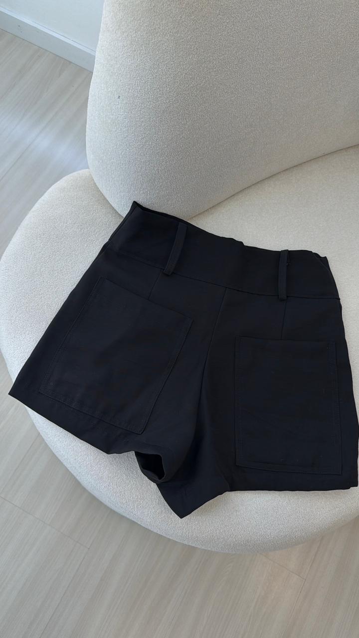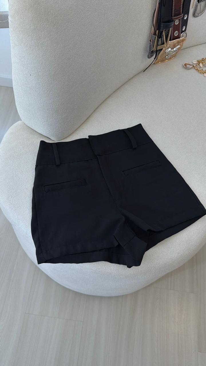 Alfaiataria premium. Cintura alta que alonga. Modelagem estruturada. Acabamento impecável. Fecho lateral discreto. Short por baixo. Saia atrás.