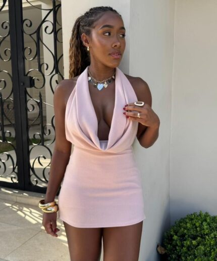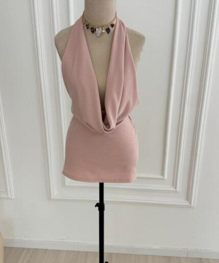 O decote na medida certa no busto, que se amarra no pescoço, garante um visual elegante e sofisticado. As costas nuas adicionam um charme especial, finalizando o look com muito estilo. Perfeito né?